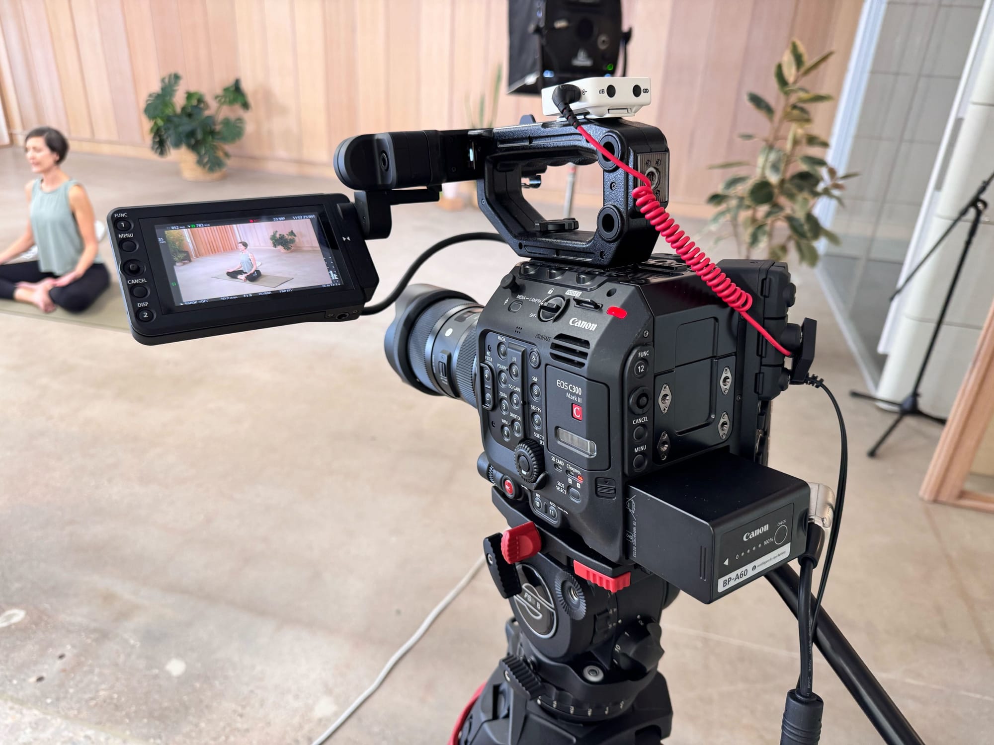 The size of this camera makes it perfect for run-and-gun travel-style shooting. However, we also use it as the primary camera for the YWA videos in Adriene’s new space. The space is smaller than her previous room, and the smaller camera footprint makes a big difference.