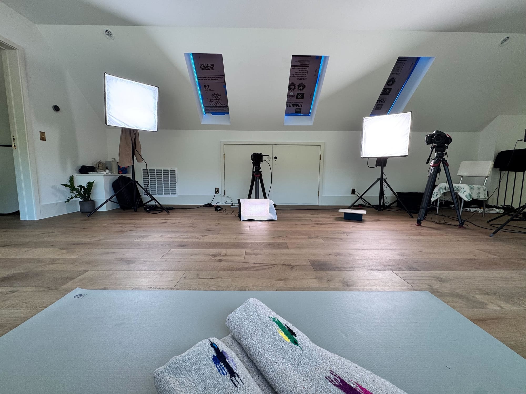 I just got home from a work trip to Austin, where we were in production on videos for Yoga With Adriene and Find What Feels Good. We made videos with Adriene on the first day in our primary production space. Our production team had built in a little extra time to tweak lighting and explore some new potential set-ups.
